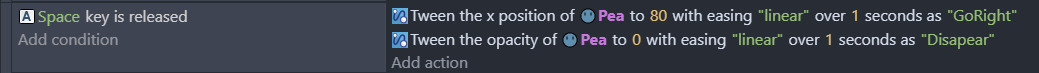 The same result can be achieved using the tween finished playing condition. This method should be used when the object may not do the second tween under some conditions.