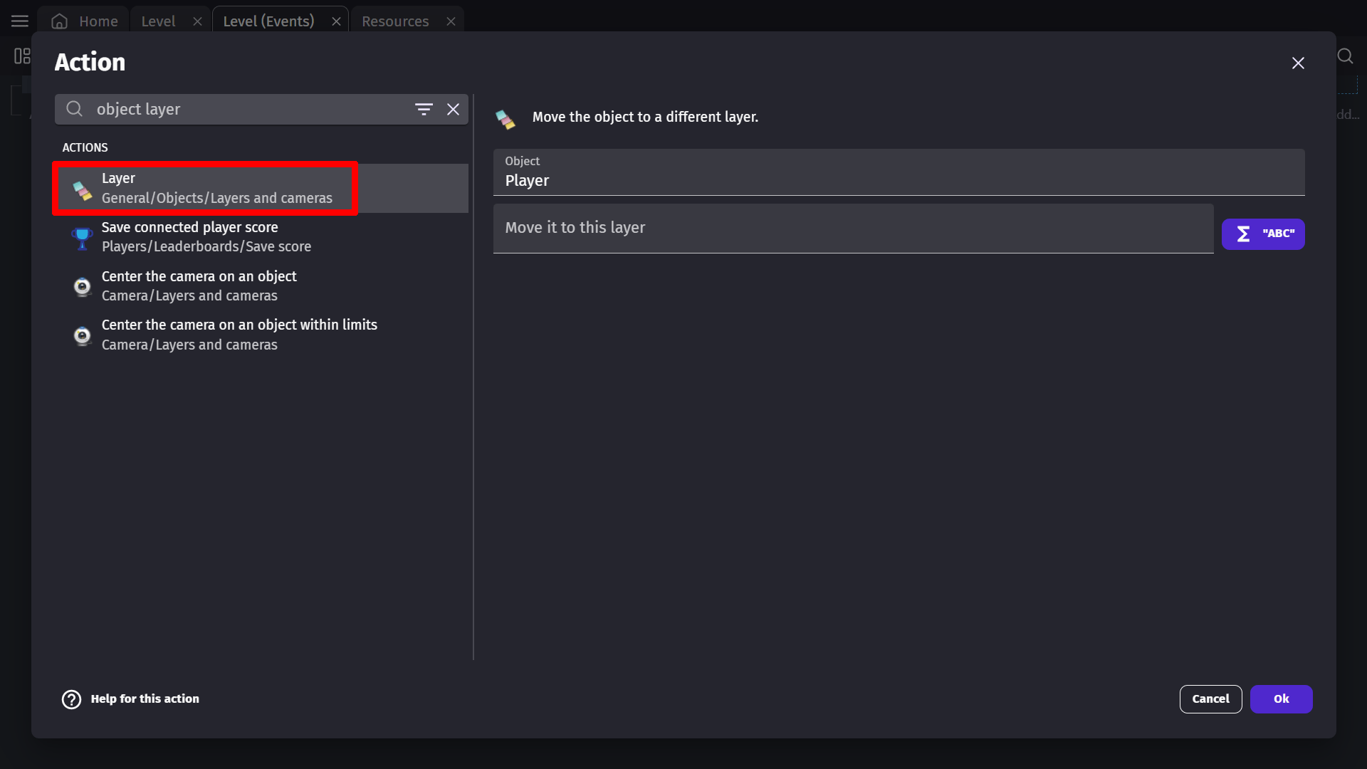Each scene can have multiple layers, but objects can only exist on one layer at a time. By default, objects added to a scene will be placed on the "base layer".