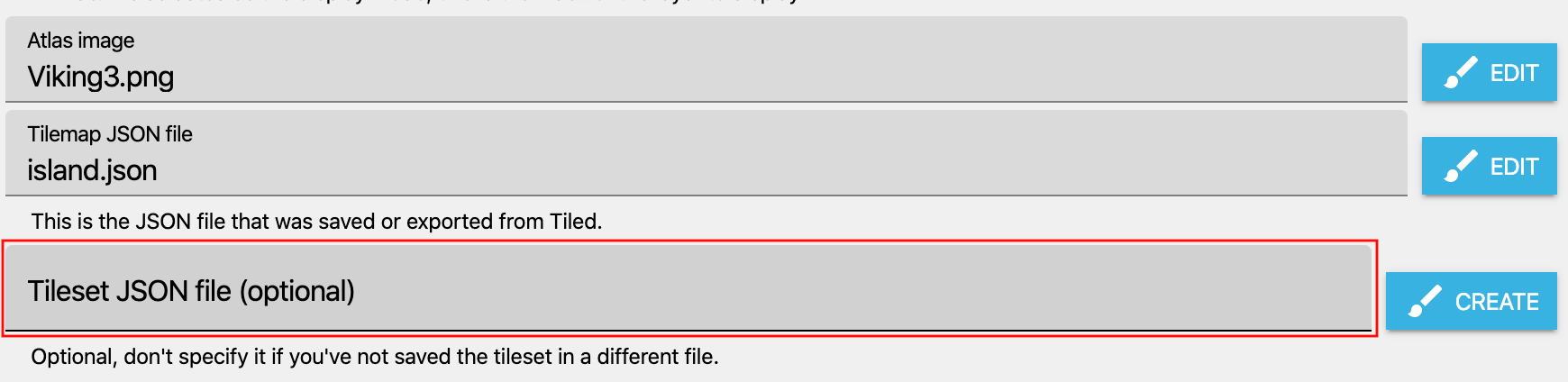 - If you do not provide a tileset JSON file, the object will look for a tileset inside the Tilemap JSON and load it if present.