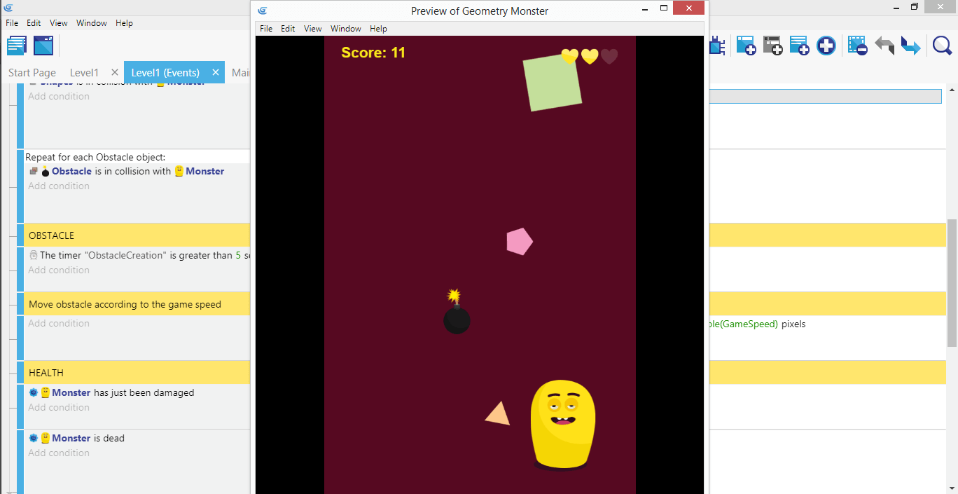 That's it! All the thirteen steps are now completed, and you've built Geometry Monster game from scratch, congratulations!