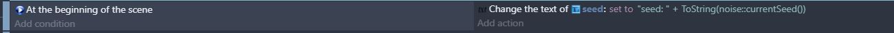 Set the valuefield to "seed: " + ToString(Noise::currentSeed()).